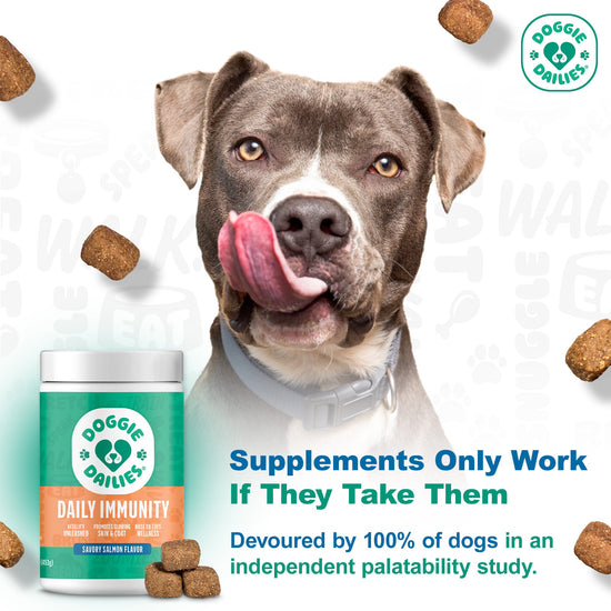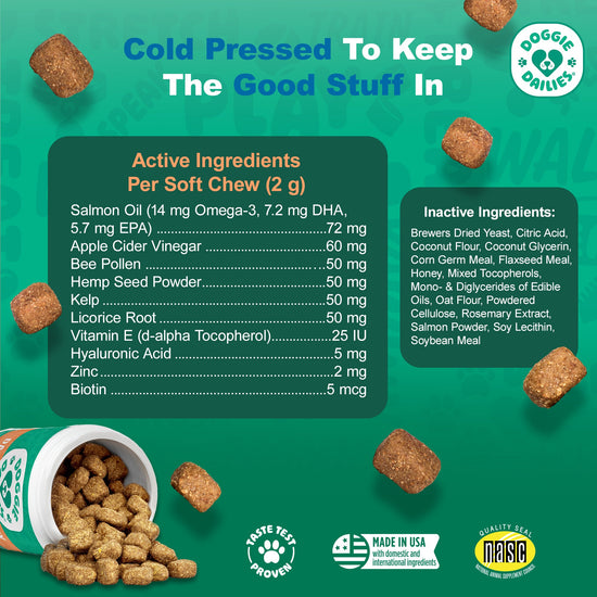 Our comprehensive formula is packed with essential vitamins and super nutrients to promote a strong immune system, provide seasonal allergy support, and promote healthy skin and a shiny coat.
