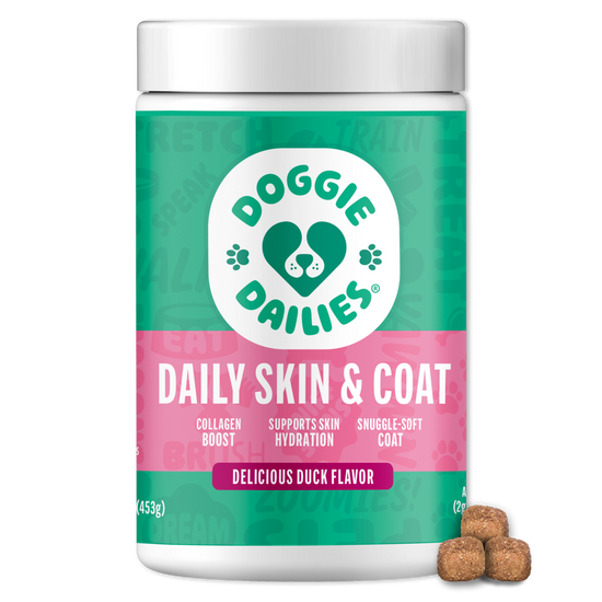 Our easy-to-give soft chews provide three sources of collagen plus omega fatty acids, vitamin E, and biotin to help promote a glossy coat, maintain moisture levels and support healthy skin.